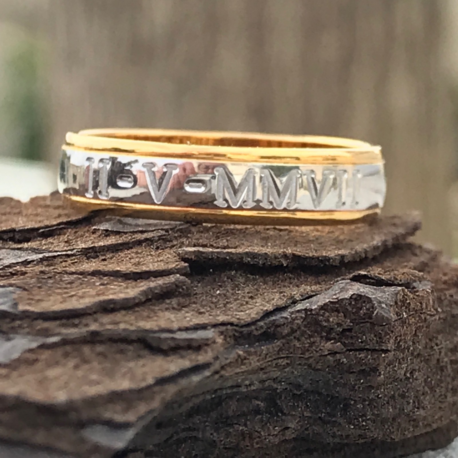 L’alliance romaine se décline sous différentes formes et finitions. La particularité de cet anneau, est la gravure de la date sur l’extérieure de la bague de base en chiffres romains, mais d’autres variantes en ont découlé.