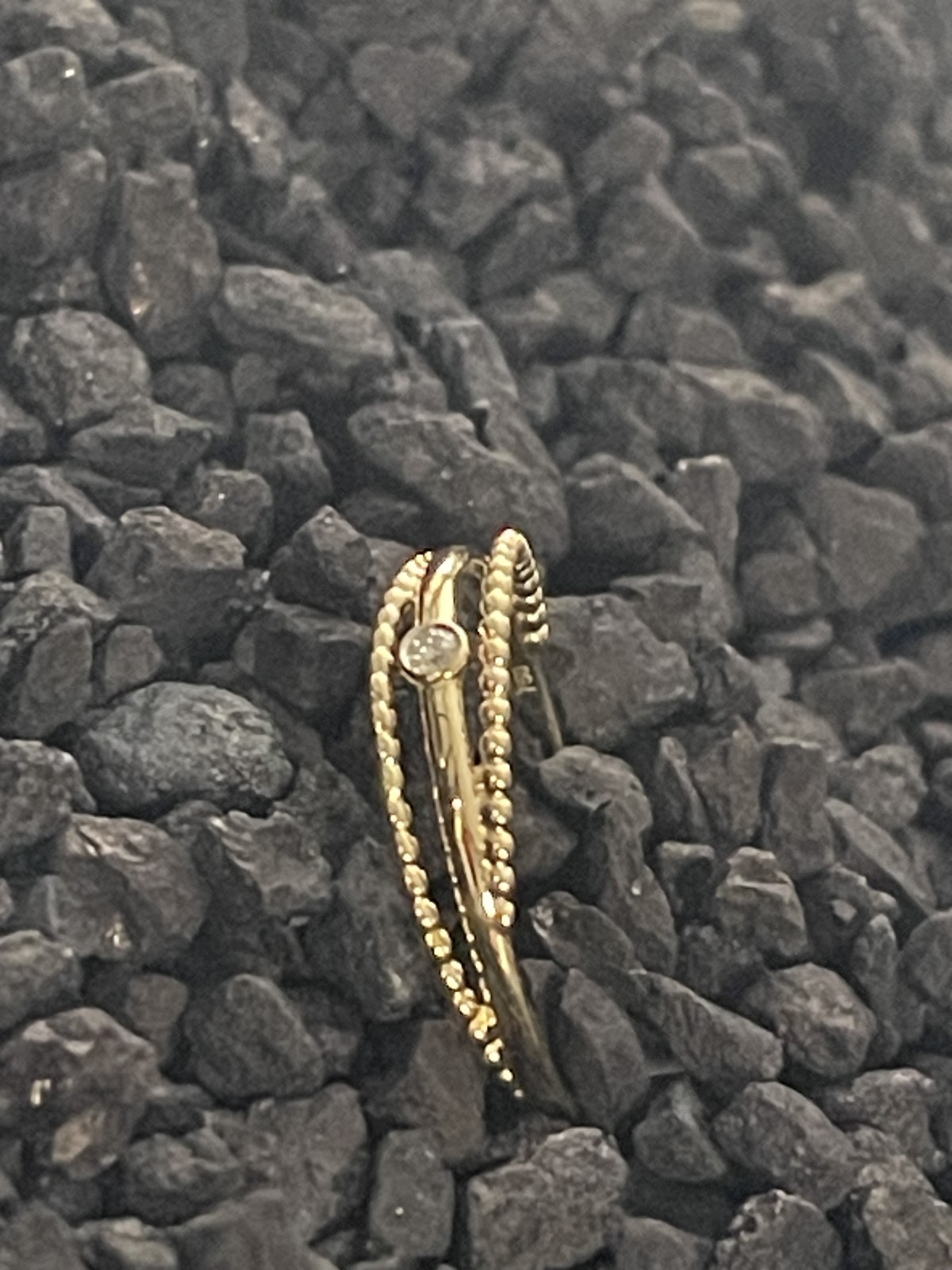Trois anneaux en or jaune formant une seule bague : effet volume maîtrisé