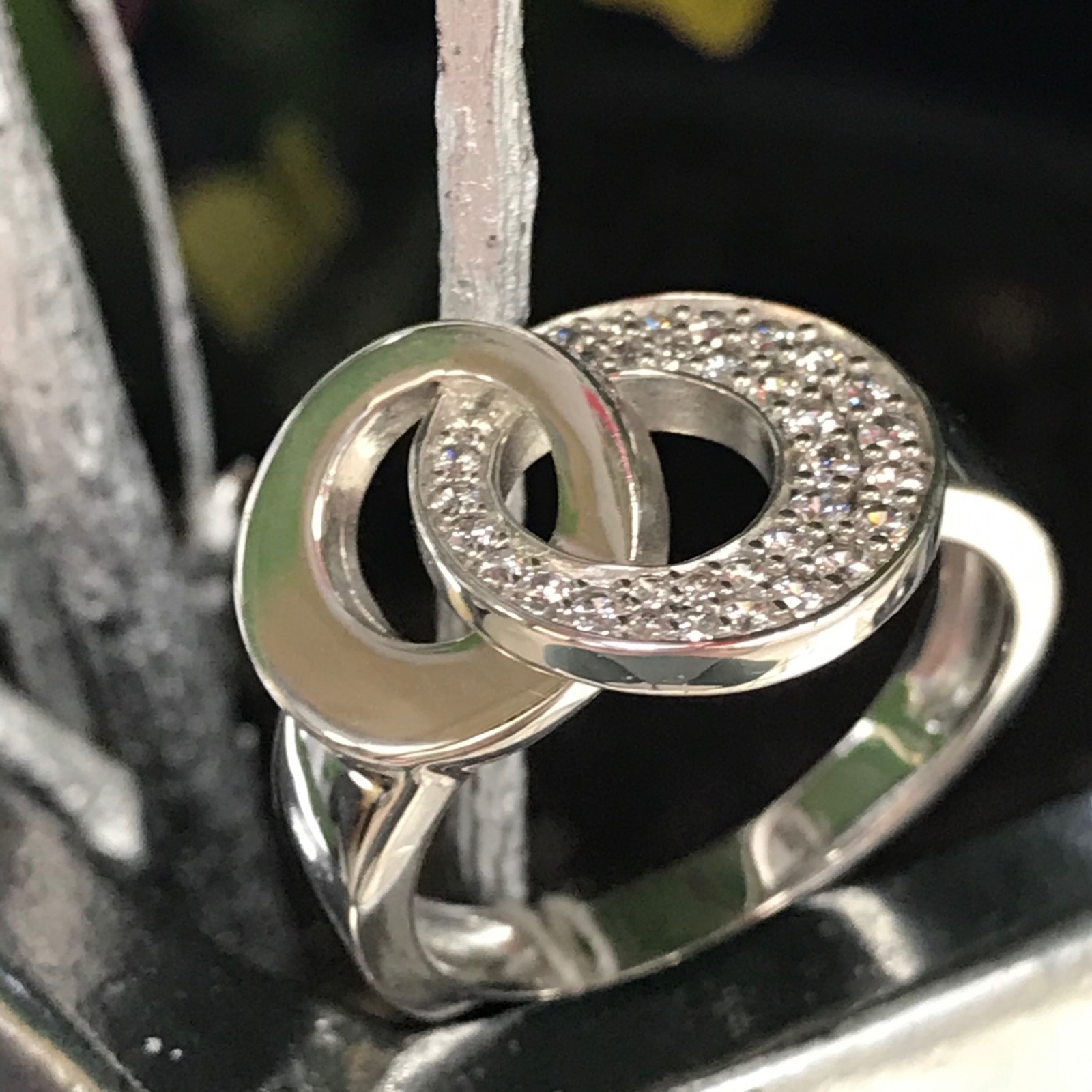 Bague argent avec 3 motifs en forme de galets.Les 3 galets on une finition différente.Taille 55 et sont prix : 110€