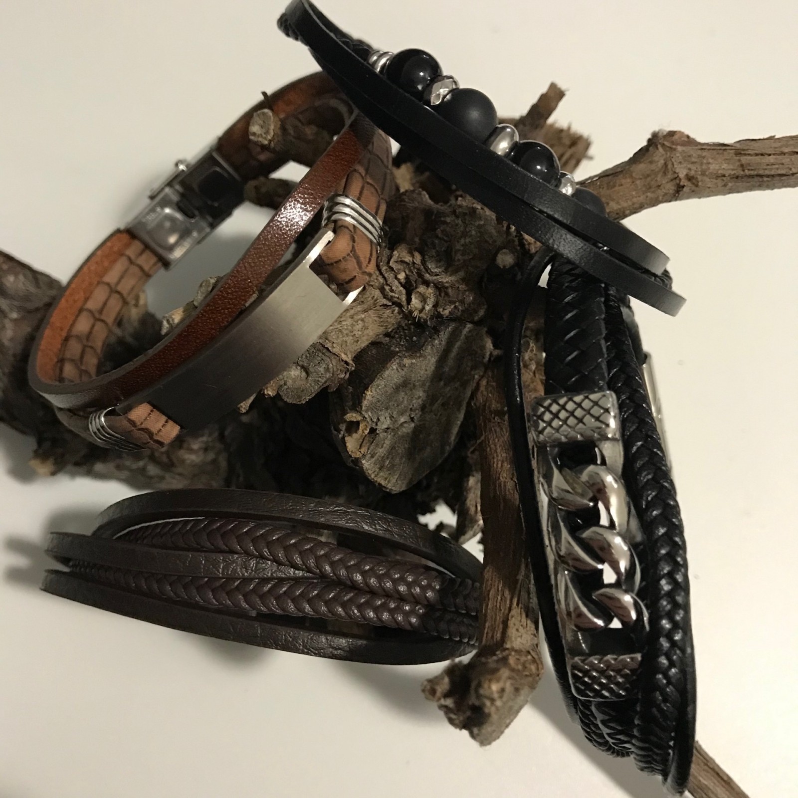 Aujourd’hui le bracelet se décline au masculin. Avec des matières tél que le cuir et l’acier il vient habillé le poignet de l’homme avec des tendances très moderne. La bijouterie Joyau d’or vous présente une gamme de bracelet....